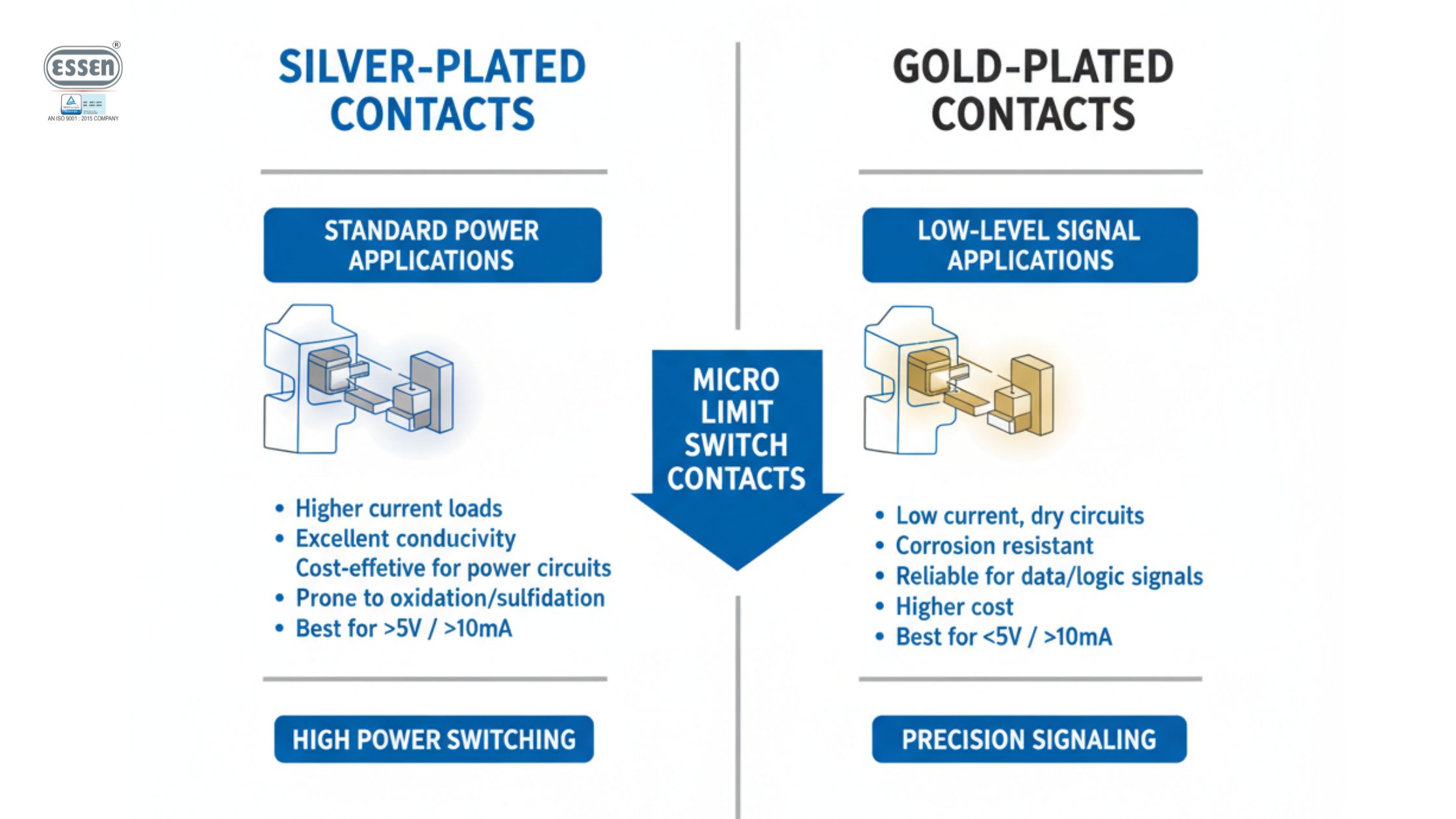 Gold-plated contacts: Ideal for low-level or dry circuits where oxidation must be avoided
